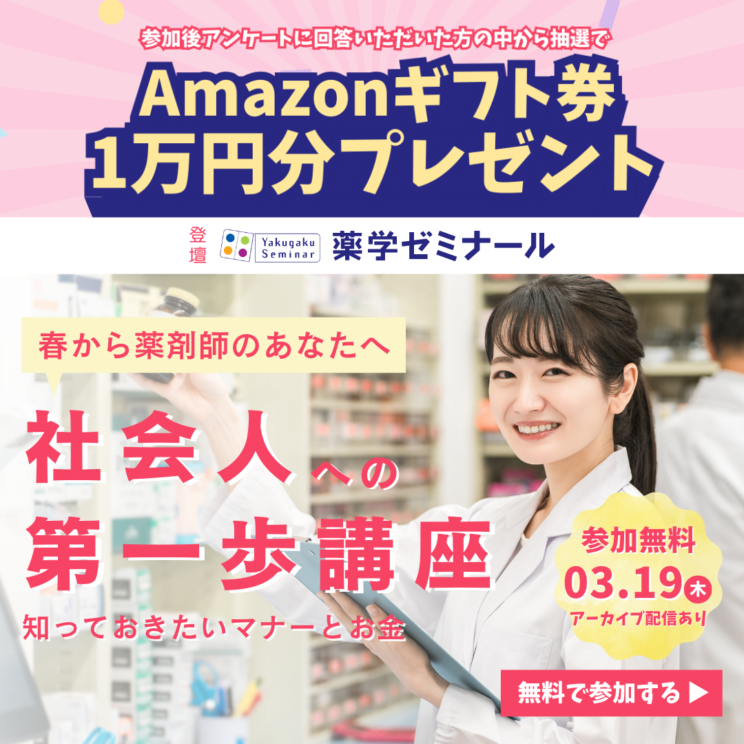 | 内容 | 2026年3月19日(木) A講座 10:00~11:00 「ヤバい新人と思われたくない!入社前に知りたい社会人マナー」 講師:難波 澄香 (医学アカデミーYTL) 「なんとなく使ってたけど、実は❝ヤバい❞新人だと思われてた・・・」と、 後悔する前に、社会人として、新人薬剤師として必要なマナーを身に着けるための講座です。 【パネリスト】室田 枝里奈(薬学ゼミナール) 調剤薬局の勤務経験あり。現在は薬ゼミ講師として実務を担当。 プライベートでは、母として奮闘中! 2026年3月19日(木) B講座 13:00~14:00 知らないと損する!?新人薬剤師のお金のキホン 講師:下保 雄嗣(元薬ゼミ講師) 「額面と手取りの違いは?」「NISA・iDeCoって何?」など、 知っておきたいお金の基本から、臨床で使える保険の知識まで学びます。 【特別講演】下保 雄嗣(元薬ゼミ講師、税理士国家試験取得) 薬ゼミ講師として勤務したのち、税理士の道を志す。 令和元年に税理士国家試験に合格し、現在は会計コンサルティング業、 薬局薬剤師、製薬企業を対象とした講師として多方面で活動中。 ✨「ためとこ」でアーカイブ配信予定!✨ 当日参加できなかった方のために、 薬剤師の生涯学習アプリ「ためとこ」でアーカイブ配信も実施予定。 ご希望の方はお申込ページ「受講を希望する講座を選択してください」の 「アーカイブ配信」をチェックしてください。 〇期間:2026年3月20日(金)~ 2026年3月31日(火) ――――――――――――――――――――――――― |